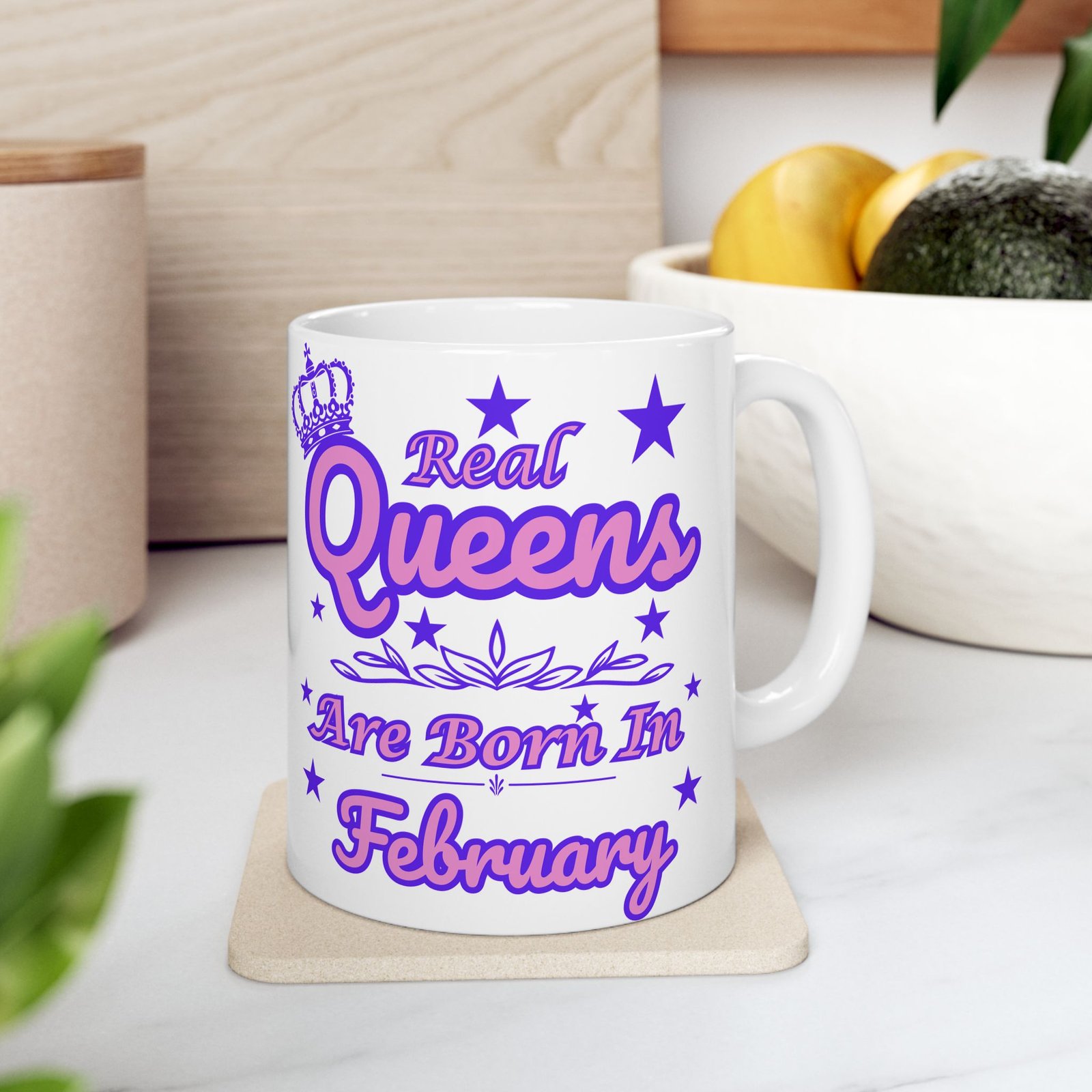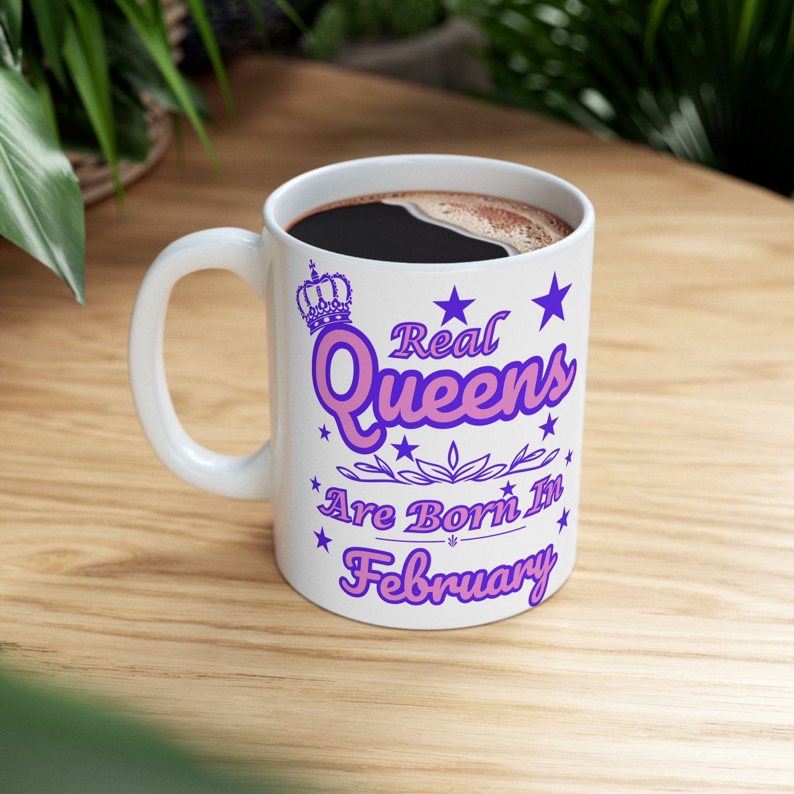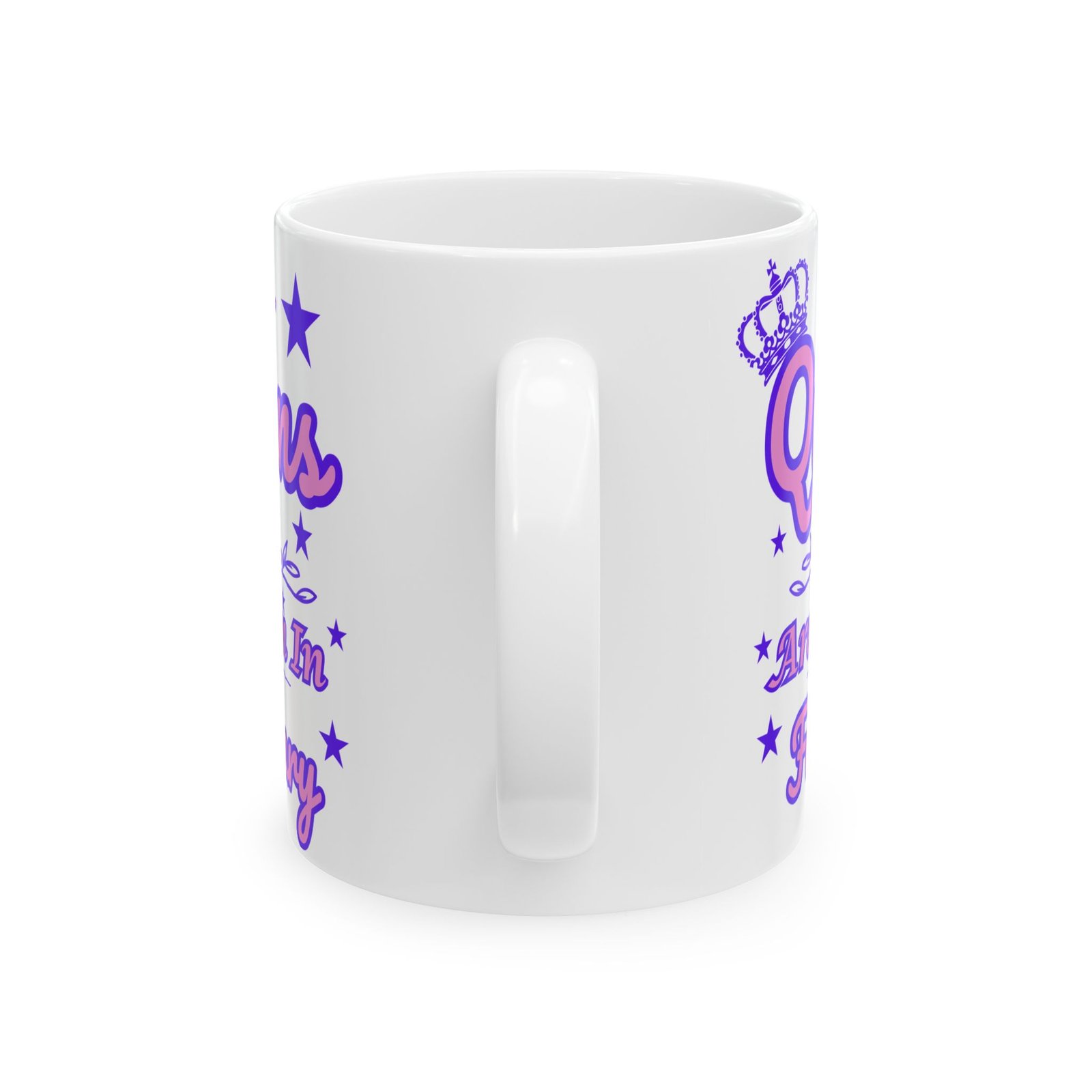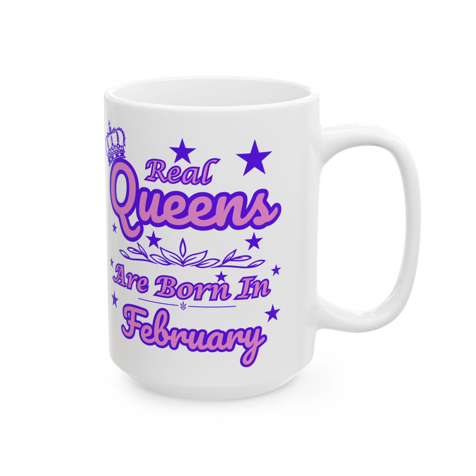 Featuring a vibrant pink and purple crown with stars, this mug is the perfect gift for the special queen born in the first month of the year.