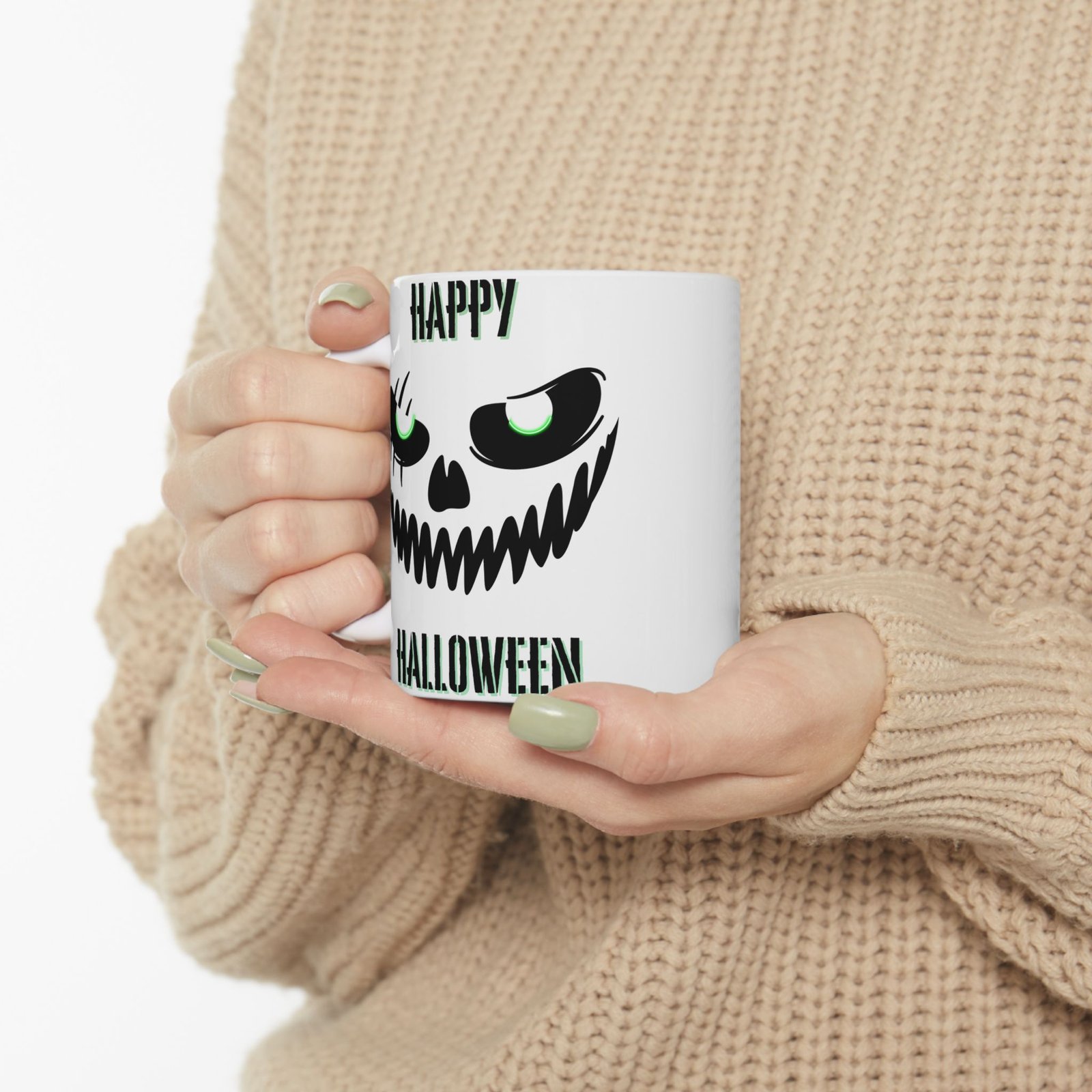Featuring a haunting yet playful spooky face design, this mug is the ultimate way to celebrate the Halloween season.
