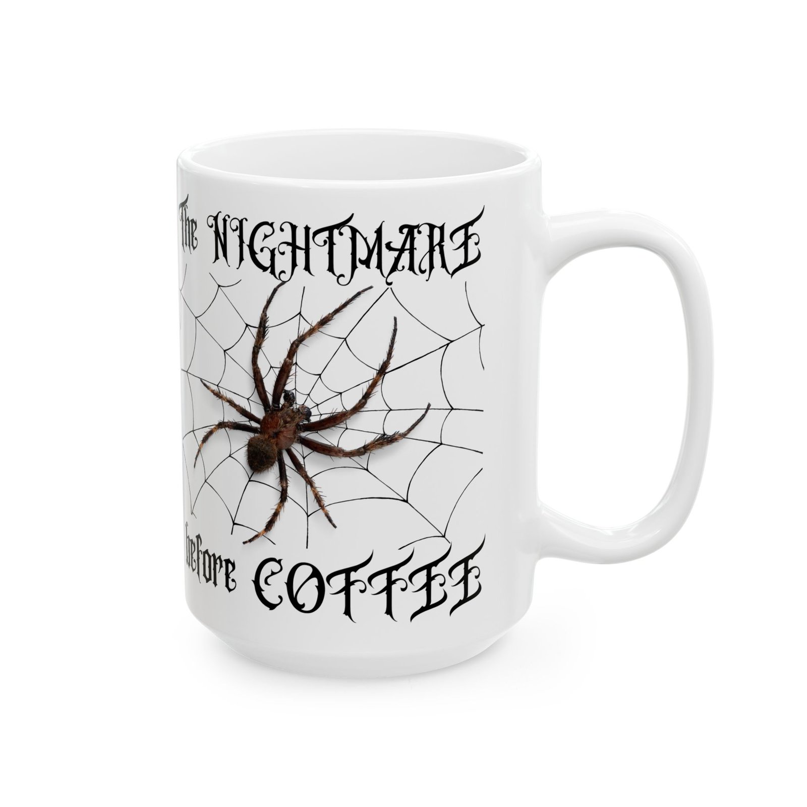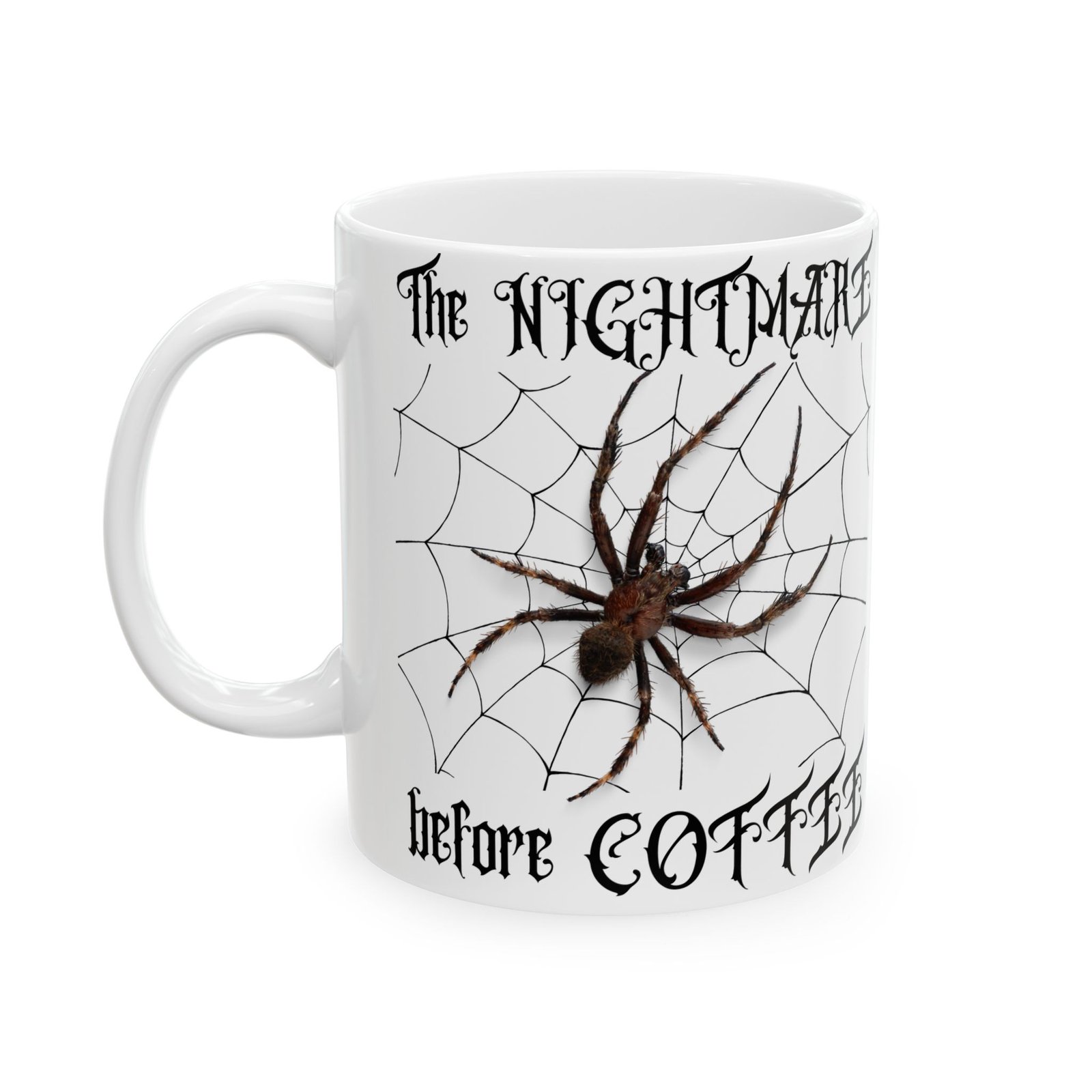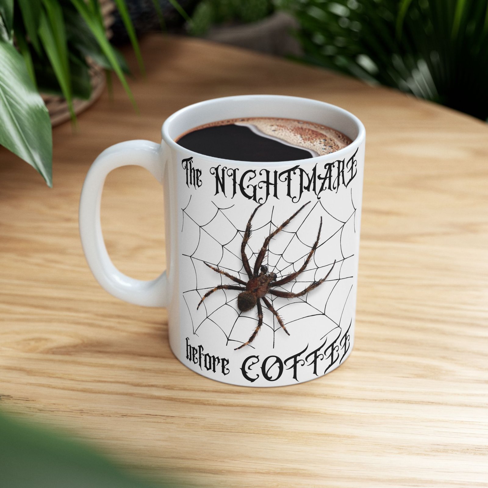 spider resting on a web, this creepy and fun mug is for Halloween, pranks, or just giving yourself a spooky start to the day.